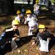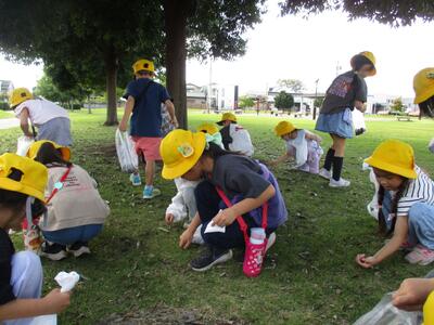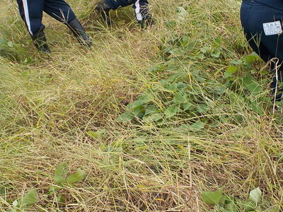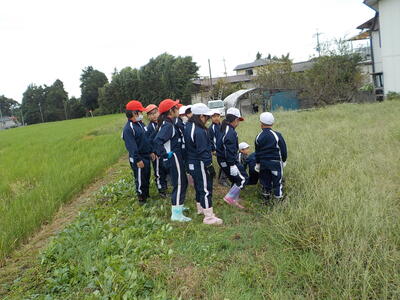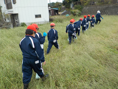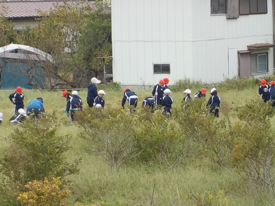 2年生が以前さつまいもの苗を植えた畑の草取りを行いました。