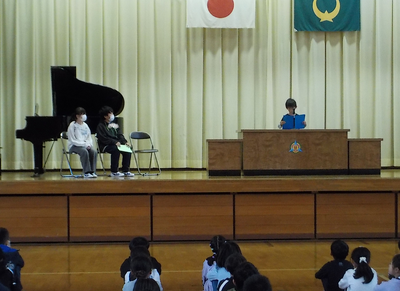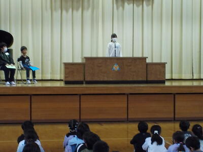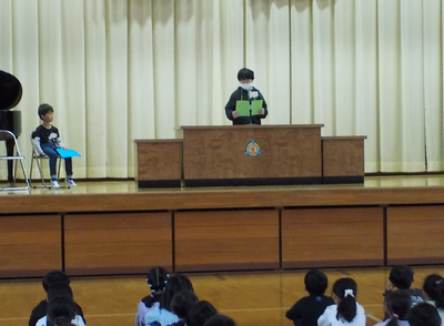 代表児童が前期の振り返りと後期に向けての意気込みについて発表しました。