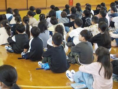 秋休みが終わり後期がスタートしました。代表児童が後期に向けてがんばりたいことを全校生の前で堂々と発表しました。