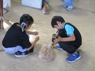 千本松牧場では、アイスクリームを食べ、動物と触れ合いました。