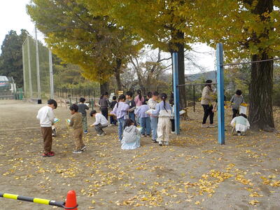 まず、黒羽運動公園へ行きました。遊具で遊んだり、集めた落ち葉を上に投げて落ち葉シャワーを楽しんだり、足湯に入ったりしました。