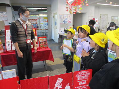 最後に、黒羽図書館に行きました。図書館にはたくさんの本があること、本の背表紙に付いている青ラベルと赤ラベルのひみつなど、いろいろなことを教えてもらいました。