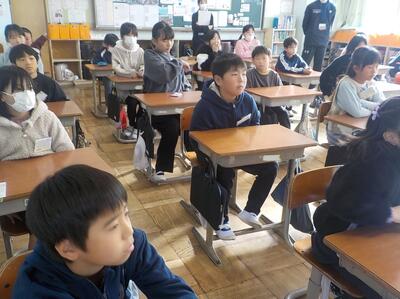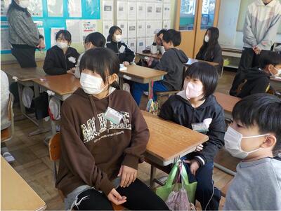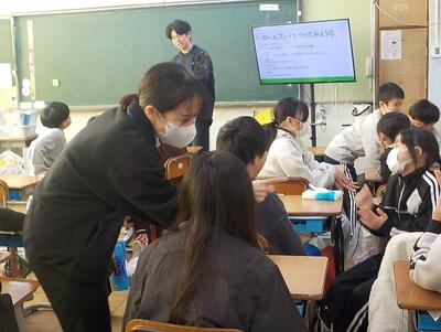 黒羽中学校の生徒が川西小学校に職業体験をしにきています。