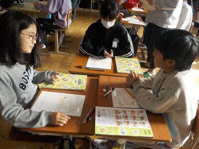 食材の栄養素について学習した後、栄養バランスを考えながらリクエスト献立を相談しました。
