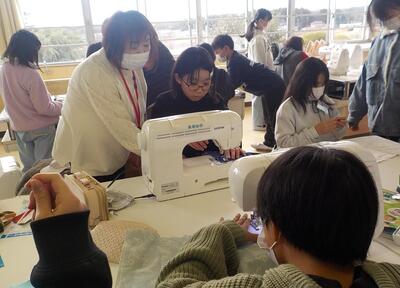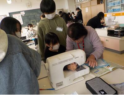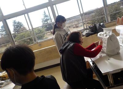 5年生が家庭科の時間にランチマットを作りました。ミシンボランティアの皆様がまち針の使い方やミシンの使い方を丁寧に教えてくださいました。