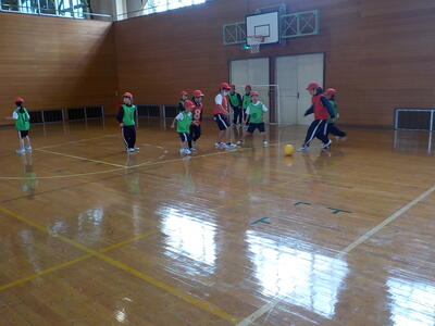外部講師にお越しいただき、1・2年生がサッカー教室に参加しました。