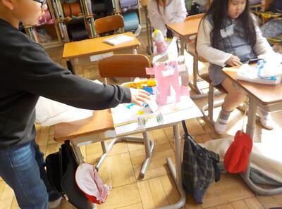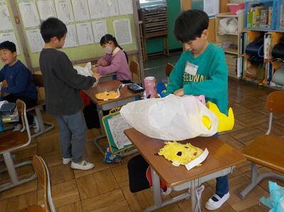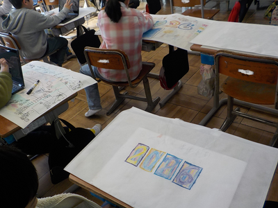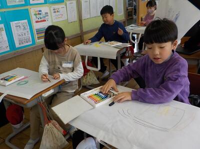 2年生は、図工の作品を持ち帰る作品バッグのデザインを描きました。