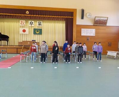 5・6年生が、卒業式のときの「別れの言葉」の練習を行いました。