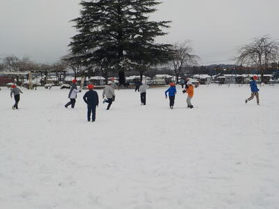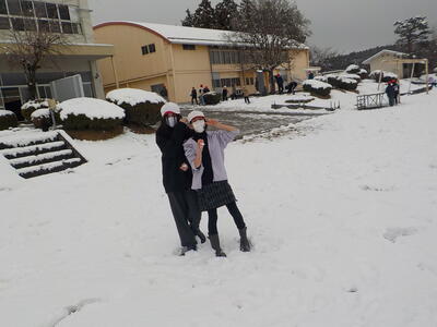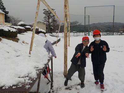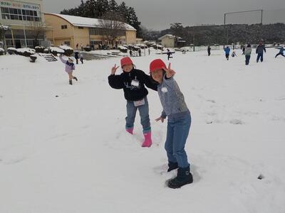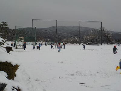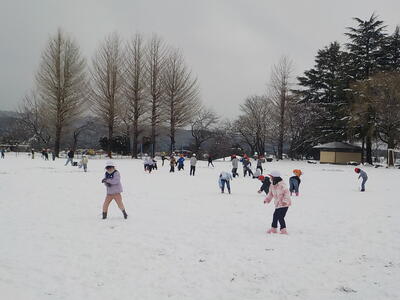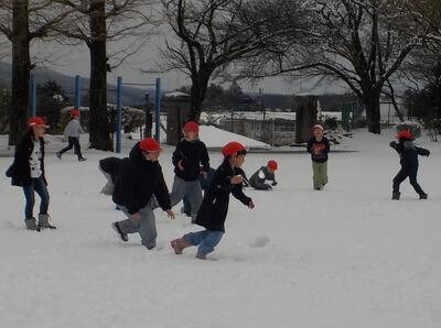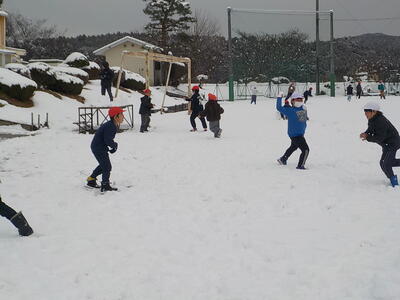 朝まで降り続いた雪が校庭に積もりました。子供たちは大喜び!業間の時間に校庭で夢中になって雪遊びをしました。