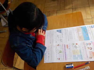 4年生は、ドリルなど使って算数のまとめをしていました。