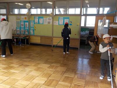 式が始まる前に4・5年生が掃除をしてくれました。4・5年生の皆さん、ありがとうございます。