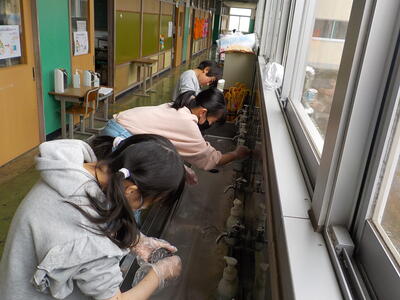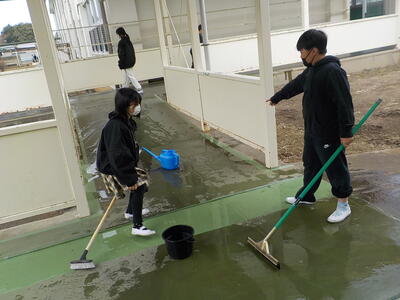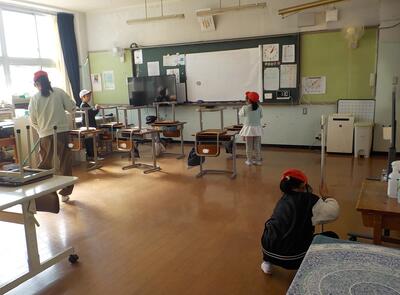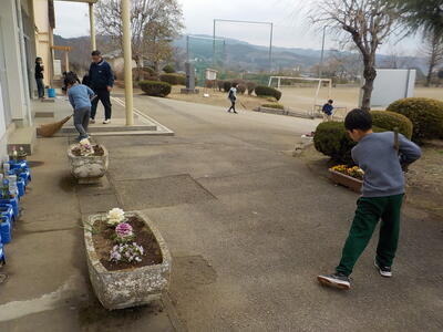 今日の5時間目は、4,5年生が明日卒業を迎える6年生のために、会場準備や校内外の清掃などを行いました。