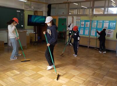 今日は6年生と一緒に行う掃除の最終日です。班長は5年生に引き継がれています。