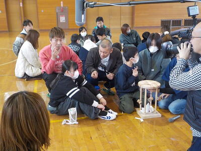 家の人や友達と協力して組紐を作りました。