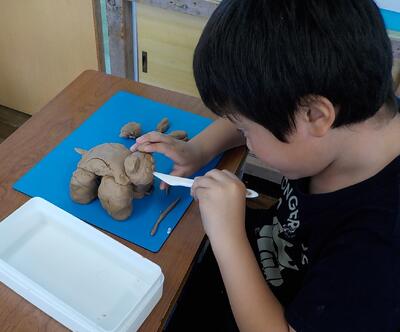 動物、恐竜、食べ物……。 子供たちの自由な発想で、粘土に命が吹き込まれていく素敵な時間でした。