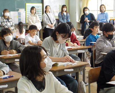 学年が上がると、授業の雰囲気もグッと真剣になります。 こちらは高学年の授業風景です。先生の問いかけに集中して耳を傾け、ノートに自分の考えを書き込む姿からは、高学年としての自覚と成長を感じます。 教室の後ろから、温かい視線で見守ってくださる保護者の皆様の存在が、子どもたちの励みになっているのが伝わってきました。