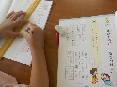 「主語ってなぁ~に?」というところから授業が始まりましたが、先生の説明を聞いて、よく理解できたようです。