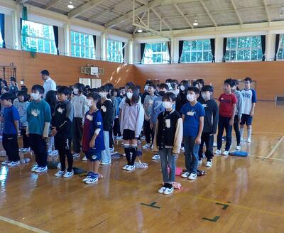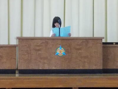 全校生が体育館に集まり、前期終業式が行われました。