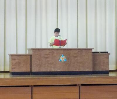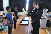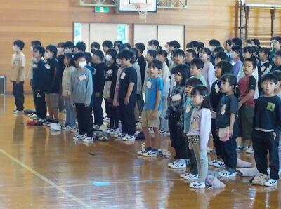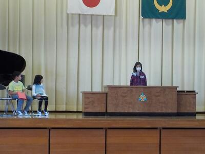 代表児童が前期の振り返りと後期に向けての意気込みについて発表しました。