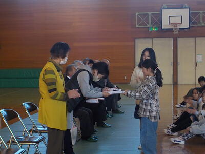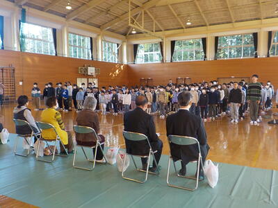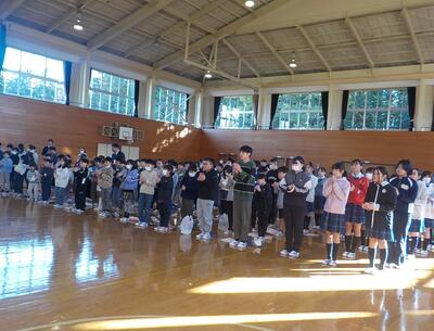 全校生で「ありがとうの歌」を歌い、感謝の気持ちを伝えました。