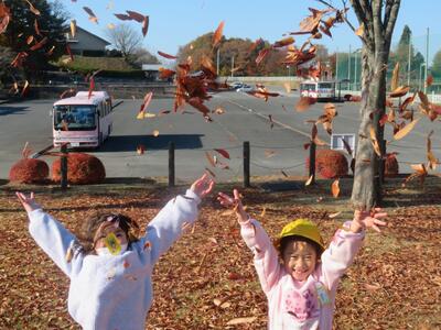 まず、黒羽運動公園へ行きました。遊具で遊んだり、集めた落ち葉を上に投げて落ち葉シャワーを楽しんだり、足湯に入ったりしました。