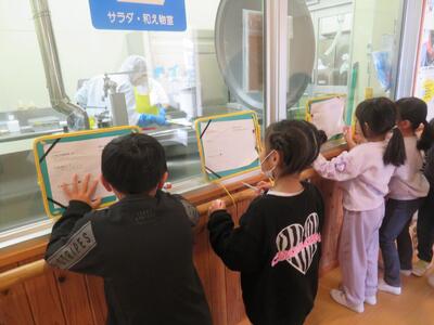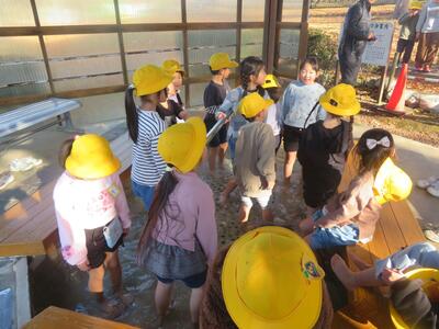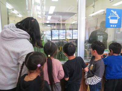 次に、大田原市学校給食センターへ行きました。所長さんや栄養士さんから話を聞いたり、今日の献立のカレーやサラダを調理している様子を見学したりしました。実際に給食を作るときに使っている道具を持たせてもらい、その重さにびっくり!!いつも食べている給食がどのように作られているのかを知ることができました。