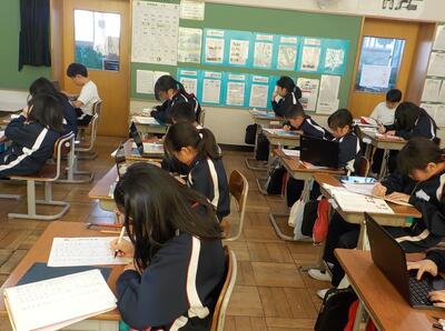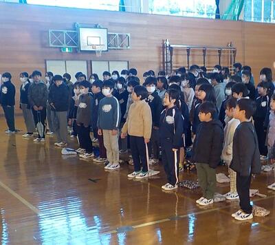 冬休みが終わり学校が始まりました。冬休み明け集会では、代表児童が全校生の前でしっかり抱負を述べていました。