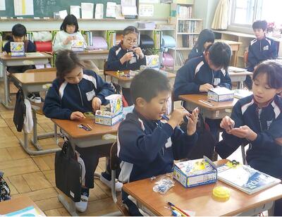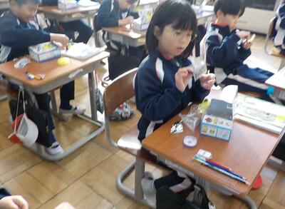 砂鉄に磁石を近づけ、様子が変化していることに驚いていました。磁石の性質に興味をもったようです。