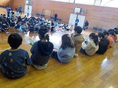 昼の活動の時間に、児童集会で1・2年生が発表をしました。