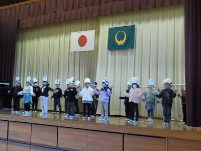 1年生は、歌と鍵盤ハーモニカの演奏を発表しました。