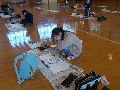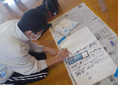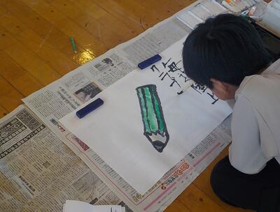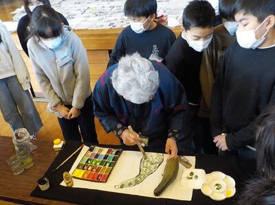 6年生が絵手紙の先生に教わりながら絵手紙をかきました。