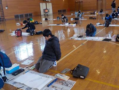 普段、なかなか言葉にできない感謝のメッセージが書かれていました。今日、作成した絵手紙は、卒業式の会場に飾られます。