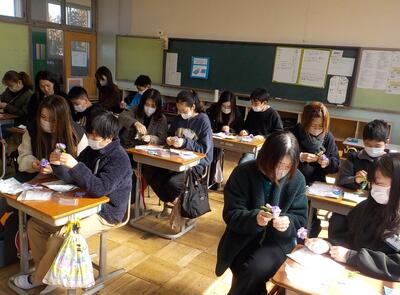 今日、作ったコサージュは卒業式のときに胸花として付けます。素敵な卒業式になりそうですね。