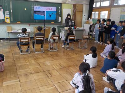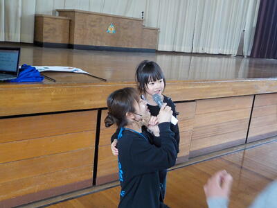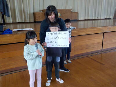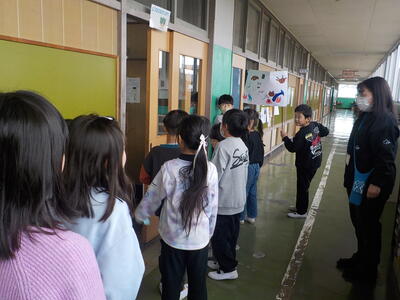 黒羽幼稚園保育園の園児の皆さんが川西小学校に来てくれました。一緒に交流したのは1年生です。園児の皆さんに楽しんでもらおうと予め準備をしていました。まず、学校行事などの紹介をしました。