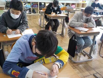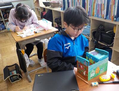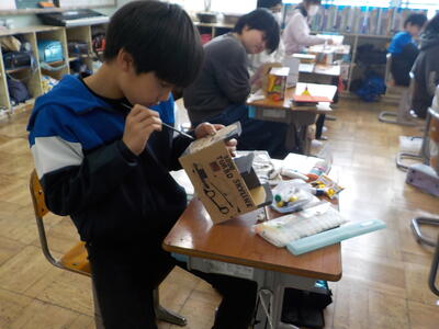 卒業式まで、あと2週間程度です。6年生が卒業に向けた活動として、卒業作品を作成しています。