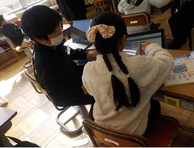 2年生がICT支援員さんからプログラミングを学習しました。命令をいくつか組み合わせて、目的の場所に行ったり目的の場所へ効率良く行く行き方を考えたりしました。